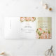 Cette élégante invitation de mariage pliée en trois présente une belle composition de roses et d'hydrangeas couleur terre cuite, nichés sur un fond vert doux. Parfaite pour annoncer votre jour spécial avec style et sophistication, cette invitation est sûre d'impressionner vos invités.