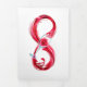 Infinity symbole of continuous stream of red pouring into glass glass glass on white background.