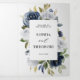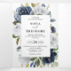 Invitation de mariage à fleurs blanches bleu marine foncé avec un élégant bouquet de bleu marine, bleu roi, blanc, rose et feuilles d'eucalyptus vert sauge. N'hésitez pas à me contacter pour toute aide de personnalisation ou si vous avez besoin d'un autre produit avec ce design.