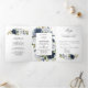 Faire-part Trois Volets Mariage Botanique Fleurie Blanc Poussiéreux Bleu M