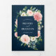 Faire-part Trois Volets Mariage Botanique Fleurs Rose Clair Marine
