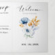 Le design présente des fleurs élégantes de bleu poussiéreux, blanc, or, rose et eucalyptus. Personnalisez avec vos détails de mariage et trouvez des designs assortis dans ma boutique "DreamHut".