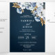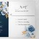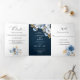 Faire-part Trois Volets Mariage Fleurie Bleu Navy Blanc Or