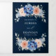 Faire-part Trois Volets Mariage floral rose bleu marine