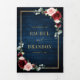 Invitation de mariage géométrique florale bleu marine bordeaux avec un élégant bouquet de bleu marine, bleu royal, blanc, rose, bordeaux, rose marsala et feuilles d'eucalyptus vert sauge et un cadre géométrique doré élégant. N'hésitez pas à me contacter pour toute aide de personnalisation ou si vous avez besoin d'un autre produit avec ce design.