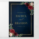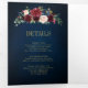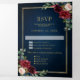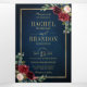 Invitation de mariage géométrique florale bleu marine bordeaux foncé avec un élégant bouquet de bleu marine, bleu roi, blanc, rose saumon, bordeaux, rose marsala et feuilles d'eucalyptus vert sauge et un cadre géométrique neutre avec paillettes dorées élégantes. N'hésitez pas à me contacter pour toute aide de personnalisation ou si vous avez besoin d'un autre produit avec ce design.