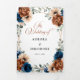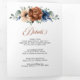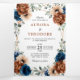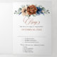 Invitation de mariage élégante sur le thème floral terreux de bleu marine, de Terracotta et d'orange, avec un bouquet élégant de roses et de pivoines de couleur bleu marine et Terracotta et de feuilles d'eucalyptus vertes. N'hésitez pas à me contacter pour toute aide de personnalisation ou si vous avez besoin d'un autre produit avec ce design.