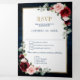 Faire-part de mariage géométrique florale bleu marine foncé bordeaux avec élégant bouquet bleu marine, bleu royal, blanc, blush, bordeaux, rose marsala et vert sauge eucalyptus feuilles et élégant cadre géométrique neutre parties scintillant or. Veuillez me contacter pour toute aide sur la personnalisation ou si vous avez besoin d'un autre produit avec ce design.