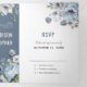 Une invitation de mariage hivernal élégante avec un bouquet de fleurs à l'aquarelle grise et bleue glacée et une verdure aux tons givrés. Veuillez me contacter pour toute aide de personnalisation ou si vous avez besoin d'un autre produit avec ce design.