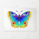 Arc-en-ciel, réaliste, artistiquement dessiné, couleurs vives papillon paon avec ailes texturées détaillées sur arrière - plan blanc. Papillon arc-en-ciel.