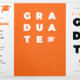 Faire-part Trois Volets Orange Bold Lettres diplômées et Casquettes