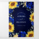 Faire-part Trois Volets Mariage Floral Moderne Rustique Tournesol Bleu Roy