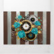 Faire-part Trois Volets Steampunk Clock and Turquoise Roses on Striped