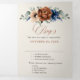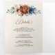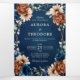Élégante invitation de mariage sur le thème floral de la terre cuite, du bleu marine et de l'orange, avec un élégant bouquet de roses, de pivoines bleues marine et de feuilles d'eucalyptus vertes de couleur terre cuite. N'hésitez pas à me contacter pour toute aide de personnalisation ou si vous avez besoin d'un autre produit avec ce design.