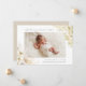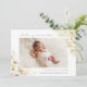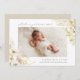 Faire-part de naissance floral élégant dans les couleurs chic de l'île pastel dispose d'un seul fond de saignée horizontale ou orientée paysage avec des grappes de fleurs d'orchidées aquarelles, frondes de palmiers séchées, feuilles, et l'herbe de pampas aux coins. Personnalisez avec le nom du bébé, les statistiques de naissance et un message personnel, et ajoutez trois photos carrés supplémentaires au dos.