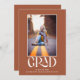 Moderne Elégante Typographie Graduation Photo avec un texte élégant et tendance ainsi qu'une photo de taille sur le devant et un arrière - plan rustique en terre cuite marron rouille boho. Tous les textes et les couleurs sont entièrement personnalisables - parfait pour vos annonces de graduation simples et modernes. Veuillez nous contacter à cedarandstring@gmail.com si vous avez besoin d'aide pour la conception ou les produits correspondants.