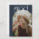 Un script de typographie moderne propre et chic avec un cadre photo voûté sur un arrière - plan bleu marine. Customisez facilement avec vos photos de remise de diplômes et les détails de l'invitation à l'avant et à l'arrière.