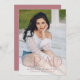 Annoncez votre diplôme de fin d'études secondaires ou collégiales avec ce faire-part moderne. Le faire-part de graduation affiche "Grad" en lettres roses poussiéreuses tendance avec l'année de graduation affichée à l'intérieur de la lettre 'd'. Personnalisez l'avant du faire-part avec la photo, le nom et l'école supérieurs verticaux du diplômé. Le faire-part s'inverse pour présenter une photo supplémentaire affichée à l'intérieur d'un cadre de carré blanc avec votre message ci-dessous.