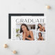 Une carte de faire-part élégante et moderne avec trois photos (une carré et deux horizontales), avec "diplômé" en haut. Personnalisez avec votre année de diplôme, votre nom et votre école le long du côté gauche. Ajoutez un message personnel à l'arrière, ainsi qu'une photo supplémentaire.