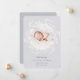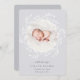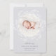 Une élégante faire-part de naissance aux couleurs douces présente une photo ronde de nouveau-nés entourée d'une couronne de branches botaniques blanches et de feuilles, avec "introduire [Nom]" en bas en lettres grises chic. Personnalisez avec la date de naissance du bébé, et les statistiques de naissance en dessous, et ajoutez un message personnel à l'arrière, ainsi qu'une photo supplémentaire.