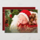 Envoyez cette carte de faire-part de naissance bébé de vacances moderne et merci pour les cadeaux tout en une seule carte. Le design comprend une photo de votre bébé avec la superposition de texte qui dit "Merci" dans une typographie de script moderne Ci-dessous est le nom de votre bébé. Le dos de la carte a un arrière - plan rouge canneberge avec vos détails de naissance personnalisés. Conçu par l'artiste ©Susan Coffey.