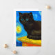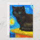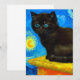 Carte avec un chat Van Gogh dans le style de la nuit étoilée! Un chaton noir moelleux perche sur une table contre un ciel bleu nuit et une lune jaune. Un cadeau à la purr pour les amoureux de les chats et collectionneurs d'art hollandais !