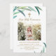 Eau botanique eucalyptus feuilles avec la photo de l'enfant, religieuse Première communion invitation faire-part.