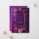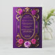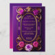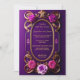 Cette majestueuse faire-part de mariage violette au design unique présente un bel or ovale avec de grandes roses violettes et roses avec un arrière - plan à dégradé violet. Cette invitation est sûr de "wow" vos invités pour votre grande occasion.