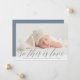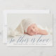 Un design de faire-part de naissance doux et élégant avec un fond de saignement intégral photo horizontale ou paysagère avec "so this is love" superposé dans le script de calligraphie chic lettrage. Le nom et les statistiques de naissance de votre bébé apparaissent sous le gris classique. Ajoutez trois photos de carré supplémentaires à l'arrière, ainsi qu'un message personnel.