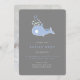 Faire-part Whimsical Cute Blue Whale Monogramme Baby Boy Birt