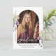 This photo graduation announcement is accented with peach and purple wildflowers and lush greenery. The elegant layout offers space a photo of the graduate.