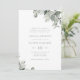 Cette invitation de mariage élégante présente de belles feuilles d'eucalyptus bohème-chic à l'aquarelle vert sauge sur le devant et le dos de l'invitation. Les produits assortis sont dans la collection Simple & Chic Eucalyptus.