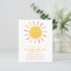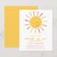 Une invitation de fête pour le 1er anniversaire de votre enfant avec un soleil mignon et un design moderne. Cliquez sur le bouton modifier pour personnaliser ce design avec vos informations.