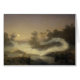 Une image d'art de multiples fées de brume blanche survolant l'eau. Cadre paysager avec ciel nocturne et forêt en toile de fond. Tableau de August Malmstom