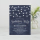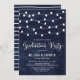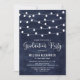 Invitation Whimsical et élégante Graduation Party avec lumières suspendues blanches avec arrière - plan bleu nuit aquarelle. Cette invitation rustique à la remise des diplômes est parfaite pour les fêtes de fin d'études en plein air. D'autres événements et d'autres arrière - plans sont disponibles.