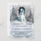 A beautiful and magical forest scene with fir trees covered in snow forming a pathway leading up to a magical, glowing portal. An angelic princess is standing in front of the portal staring in. She is wearing a flowing white regal ballgown and is preparing to enter the magical Realm. The graphics are placed on a pale dusky blue background infused with white snowflakes and ethereal whimsy. This downloadable and printable invite is ideal for a fairytale fantasy birthday or winter wonderland theme cleebration. The templates may be personalized to suit your requirements.