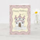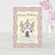 Un joli château de conte de fées dans les nuages entouré d'une bordure rose assortie.