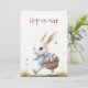 Invitez vos invités à une célébration printanière fantaisiste avec cette invitation de Pâques double face "Hop on over". Le devant présente une douce illustration à l'aquarelle d'un lapin blanc portant un pull à carreaux bleus, portant joyeusement un panier d'œufs mouchetés. Le verso est dédié aux détails de votre fête, offrant une mise en page claire et organisée pour les informations relatives à votre brunch ou chasse aux œufs. C'est un choix charmant et de haute qualité pour une réunion de vacances familiale.