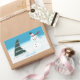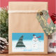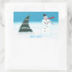 Une peinture amusante d'un sapin de Noël et d'un bonhomme de neige dansant/rocking dans la neige, est imprimée sur des autocollants personnalisés. Le texte dit : "Faisons du rock, et on peut facilement le customiser sur le modèle.