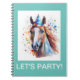 Faisons carnet aux amateurs de chevaux. Joli cheval d'aquarelle sur le carnet bleu vous aidera à suivre les affectations et inspirer votre écriture.