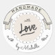 Autocollant rustique vintage pour votre envoi ou affichage de produit avec un script et monogramme "Fabriqué à la main avec amour". Consultez notre magasin pour plus d'articles de cette collection et ajoutez-le avec un timbre personnalisé pour vos articles faits à la main.