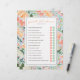 Ce modèle de shower de mariage comprend le jeu "devinez qui est la mariée ou le marié", avec 14 questions modifiables par oui ou non. Photo facultative au verso. Personnalisez tout le texte, vous pouvez même supprimer les cercles "M" et "F" pour créer une version à compléter de n'importe quel jeu. Une fois dans l'éditeur, vous pouvez modifier le titre du jeu et les questions, y compris le style de police, la couleur, la taille, la couleur de fond, et même l'échelle des fleurs pour correspondre à votre événement.