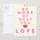 NewParkLane - Carte postale, avec une citation inspirante "Faites plus de ce que vous aimez" dans une typographie moderne en rose chaud, contre un motif abstrait de rayures jaunes et blanches.