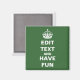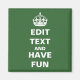 Modifiez le texte pour créer votre propre aimant parodique "Keep Calm and Carry On". Cliquez sur "Customiser" puis sur "Modifier" pour changer l'arrière - plan en couleur !