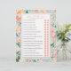 Ce modèle de shower de mariage présente le jeu "qu'a-t-il dit à propos de sa future mariée", avec 16 questions oui ou non modifiables. Photo facultative au verso. Personnalisez tout le texte, vous pouvez même supprimer les cercles "O" et "N" pour créer une version à compléter de n'importe quel jeu. Une fois dans l'éditeur, vous pouvez modifier le titre et les questions du jeu, y compris le style de police, la couleur, la taille, la couleur de fond, et même l'échelle des motifs floraux pour les adapter à votre événement.