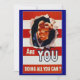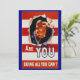 Une perle de 5" x 7" brille l'invitation avec une image vintage des années 1940 de la main de l'oncle Sam, avec son doigt pointeur, déchirant à travers des rayures rouges et blanches sur le bleu. Le sentiment dit : "Faites-vous tout ce que vous pouvez faire ?" Le dos est bleu avec le texte personnalisable "Pour être à notre fête ?" Consultez le étiquette correspondant et enregistrez l'autocollant de date. Voir la collection Patriotic 40s Invitation dans les INVITATIONS | Section Invitations et Cartes.