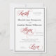 Telle qu'adaptée à partir de 1 Corinthiens 13, cette élégante faire-part de mariage d'écriture élégante Foi, Espoir et Amour rouge et gracieux est un choix idéal pour le mariage chrétien formel moderne. Découvrez la suite complète d'invitations religieuses et d'accessoires au magasin Zazzle, Graphic Suite.