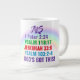 Jumbo Certains jours, une tasse de joe de taille régulière ne le fera pas. Quand vous avez besoin d'une dose de caféine en plus, utilisez votre tasse XL de Zazzle. Peut contenir jusqu'à 591 ml. Idéal pour des soupes, céréales, glaces et du chili aussi ! Cette tasse géante à une anse en forme de C pour une utilisation confortable. Dimensions : Hauteur : 4,5" Diamètre : 3,9" Capacité : 20 onces Micro-ondes et lave-vaisselle sans danger Construction céramique forte Satisfait ou dépasse les exigences de la FDA en matière de salubrité des aliments et des boissons Conseil du concepteur : Pour assurer l’impression de haute qualité, veuillez noter que l’aire de conception personnalisable de ce produit mesure 4" de haut x 10,5" de large