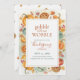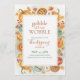 Charming Thanksgiving invitation with a decorative border featuring watercolor pumpkins, pie, wine glasses, and autumn leaves surrounding a framed center. The warm color palette and playful "Gobble till We Wobble" message create an inviting atmosphere. Perfect for family gatherings and friendsgiving celebrations. Includes all essential event information with elegant typography.