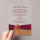If you've found the love of your life and want to invite all your family and friends in an unforgetable way, then this romantic autumn wedding invitation on frosted acrylic with images of colorful fall leaves, a twine bow, and a wooden heart atop a 2D PRINTED ON wine colored ribbon running across the bottom of the invitation is sure to get everyone's attention. Printed words on the wooden heart say, "Fall in Love" on it. Your wedding ceremony, reception, and RSVP info are printed above the ribbon image in wine and burnt orange. There is also a simulated burlap yextire below the ribbon that you can remove if you prefer. If you need any additional matching items, please email your request to niteowlstudio@gmail.com or use the Zazzle chat feature to get in touch.